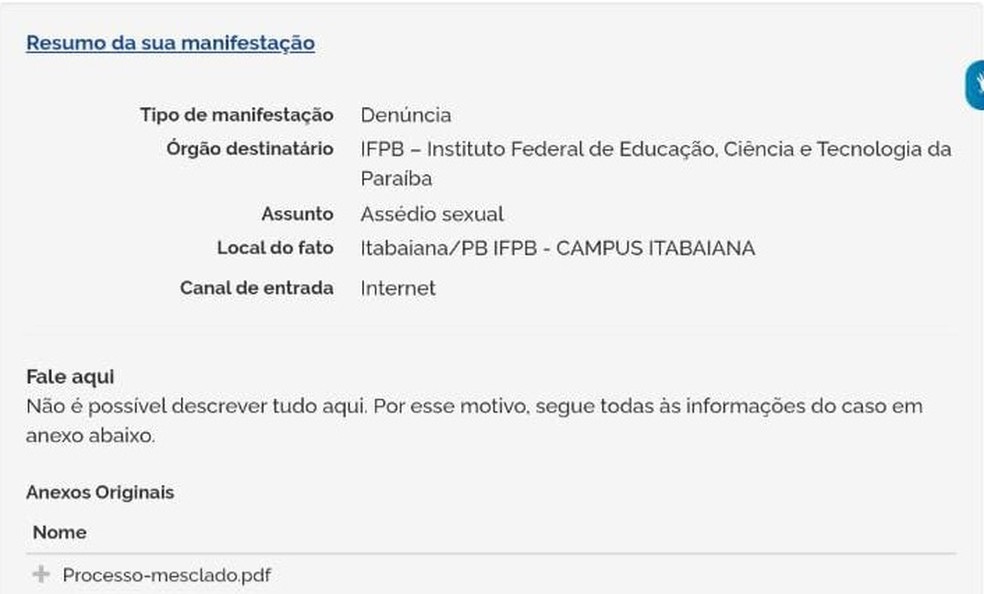 Protocolo confirma que denúncia contra professor do IFPB foi formalizada — Foto: MPF/Reprodução